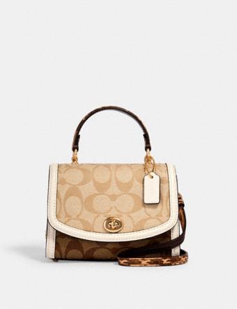 Shown in picture, This MICRO TILLY TOP HANDLE IN BLOCKED SIGNATURE CANVAS is recently reduced to $89 (70% off) from original $298 price tag.